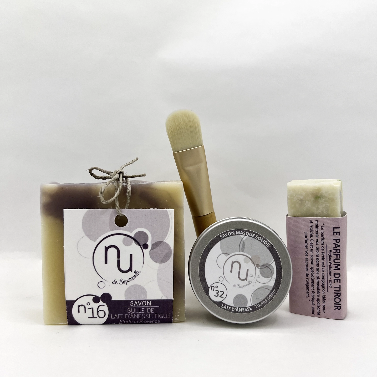 Un savon masque au lait d’ânesse ou décliné en version lavande, reconnu pour ses propriétés apaisantes et régénérantes.
